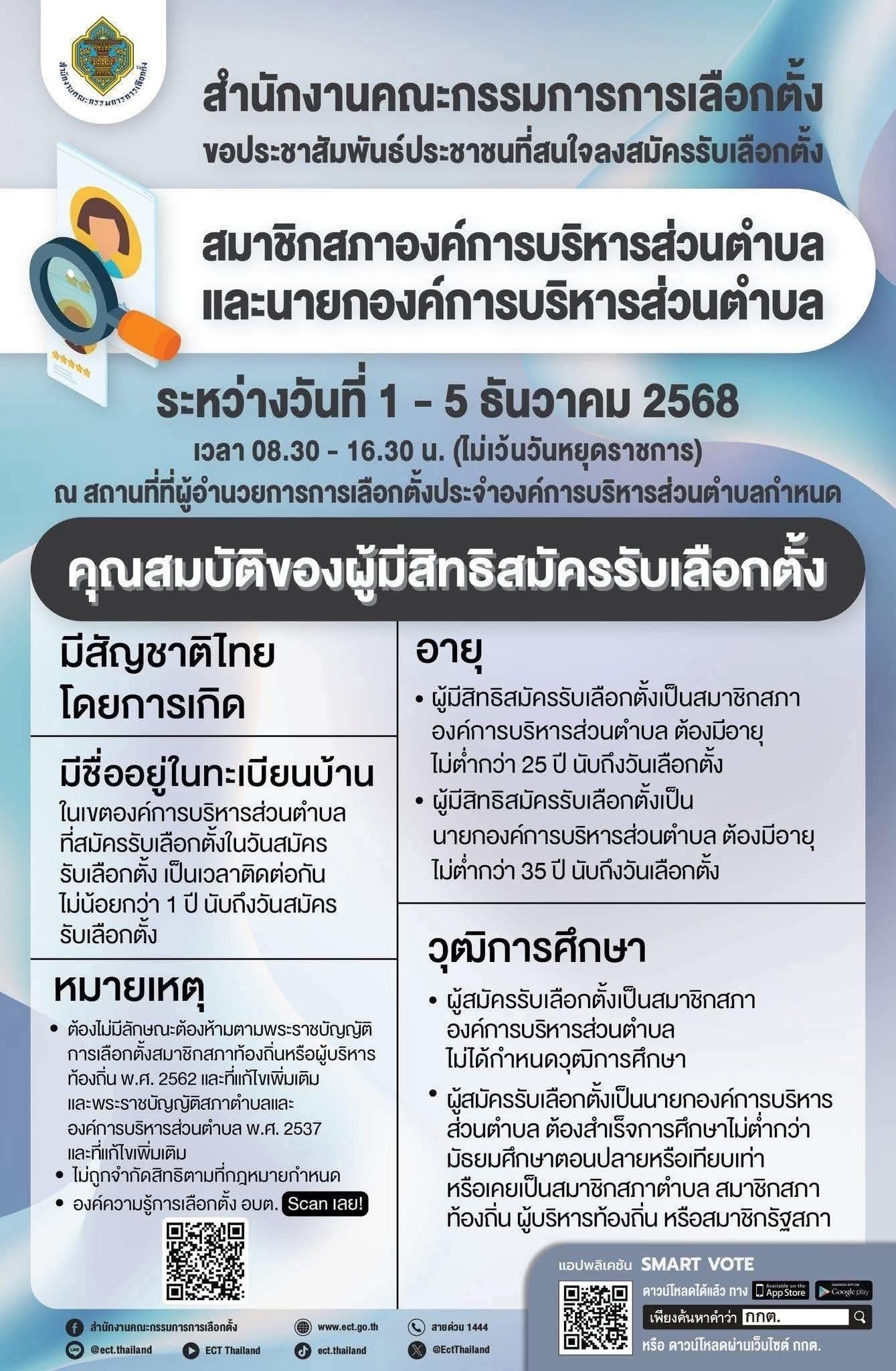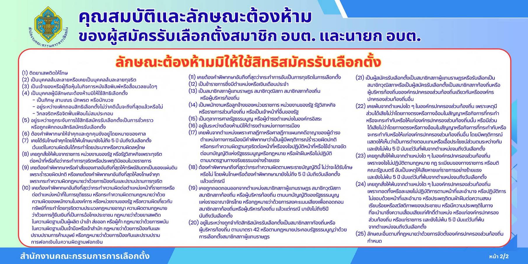 คุณสมบัติและลักษณะต้องห้ามในการสมัครสมาชิกอยต. และ นายกอบต. ประจำปี 2568