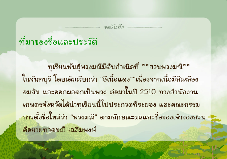 ทุเรียน GI รวมถึงพวงมณี หากต้องการชิมทุเรียนพวงมณีสดจากสวน